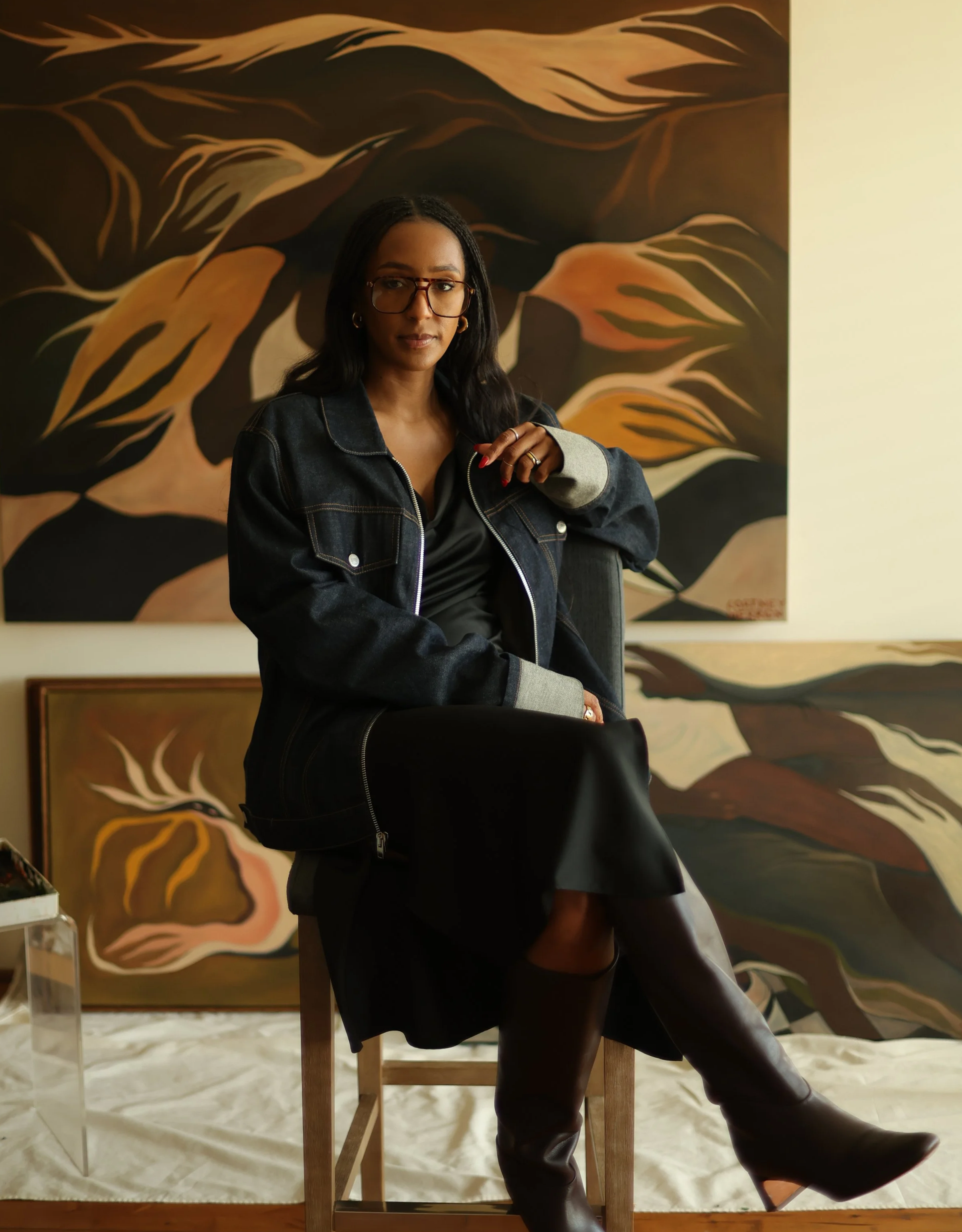 My artistic process is deeply rooted in self-reflection and solitude, those quiet moments when the noise of the outside world fades and I can truly listen to myself. In my studio, usually with music flowing through my headphones, I’m able to lose myself in the process and allow intuition to take the lead. I need that breathing room, time, stillness, and space to play, because it’s in those moments of calm that my most honest work emerges. Just as my paintings capture fleeting moments of introspection, my practice mirrors that same stillness, offering a space to explore, experiment, and fully immerse myself in creation.